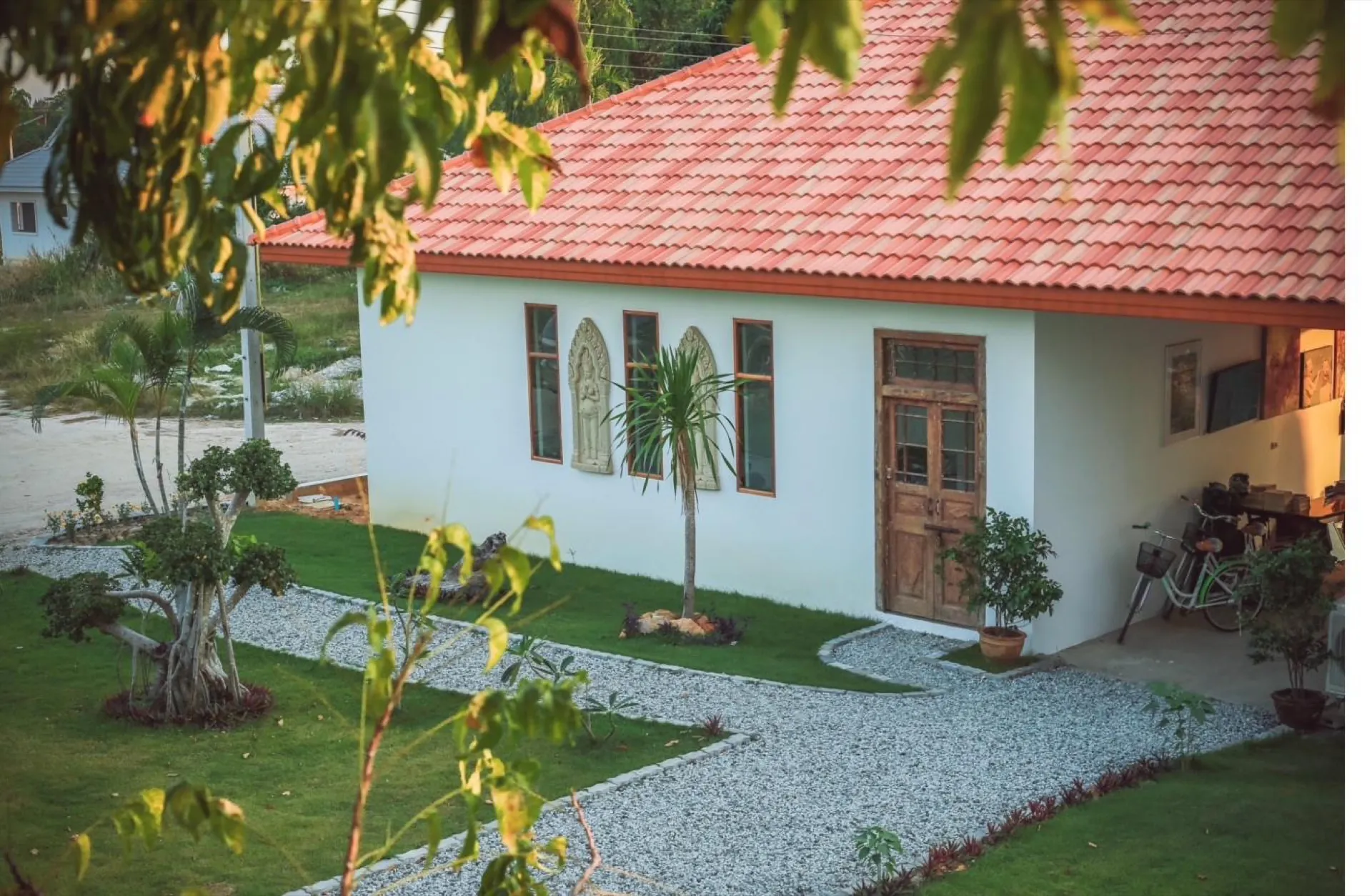 Three rai of tropical garden in Rayong. Mae Ram Phueng Beach is a ten-minute walk. Bangkok is two and a half hours by car.